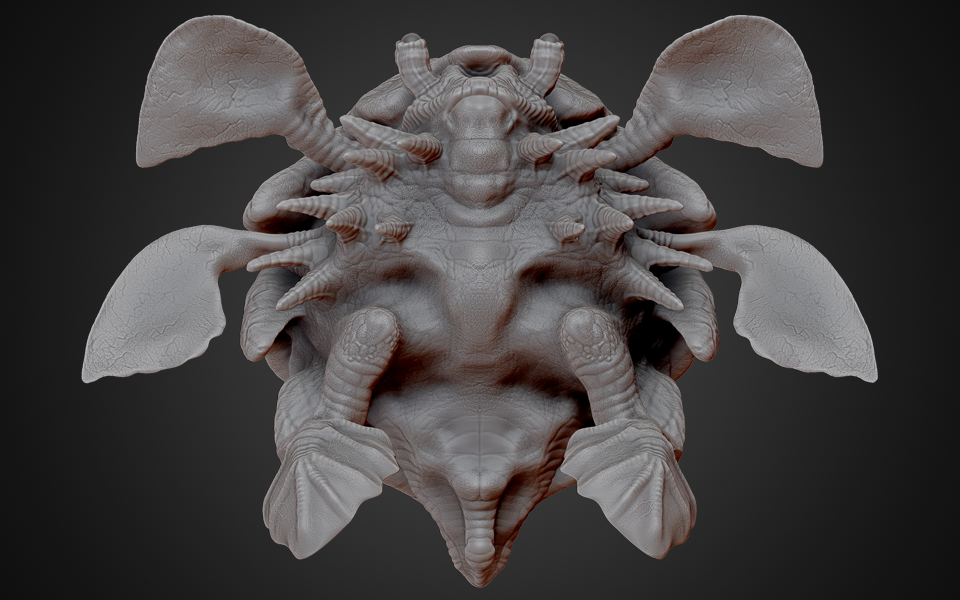 Living on an earth like planet, Gliese 581, where life has evolved to a hexapedal genome base. A large ocean based creature that can lay its eggs both on land and in the water. Gliese 581is much larger than Earth with longer seasons. Migration demands multiple times of laying eggs either on sandy beaches or in shallow kelp fields. Six extremities have become critical to its survival helping the creature glide through the water and move seamlessly on land. The creature can breathe air or water and is a herbivore. They are very social creatures, living in large family groups.