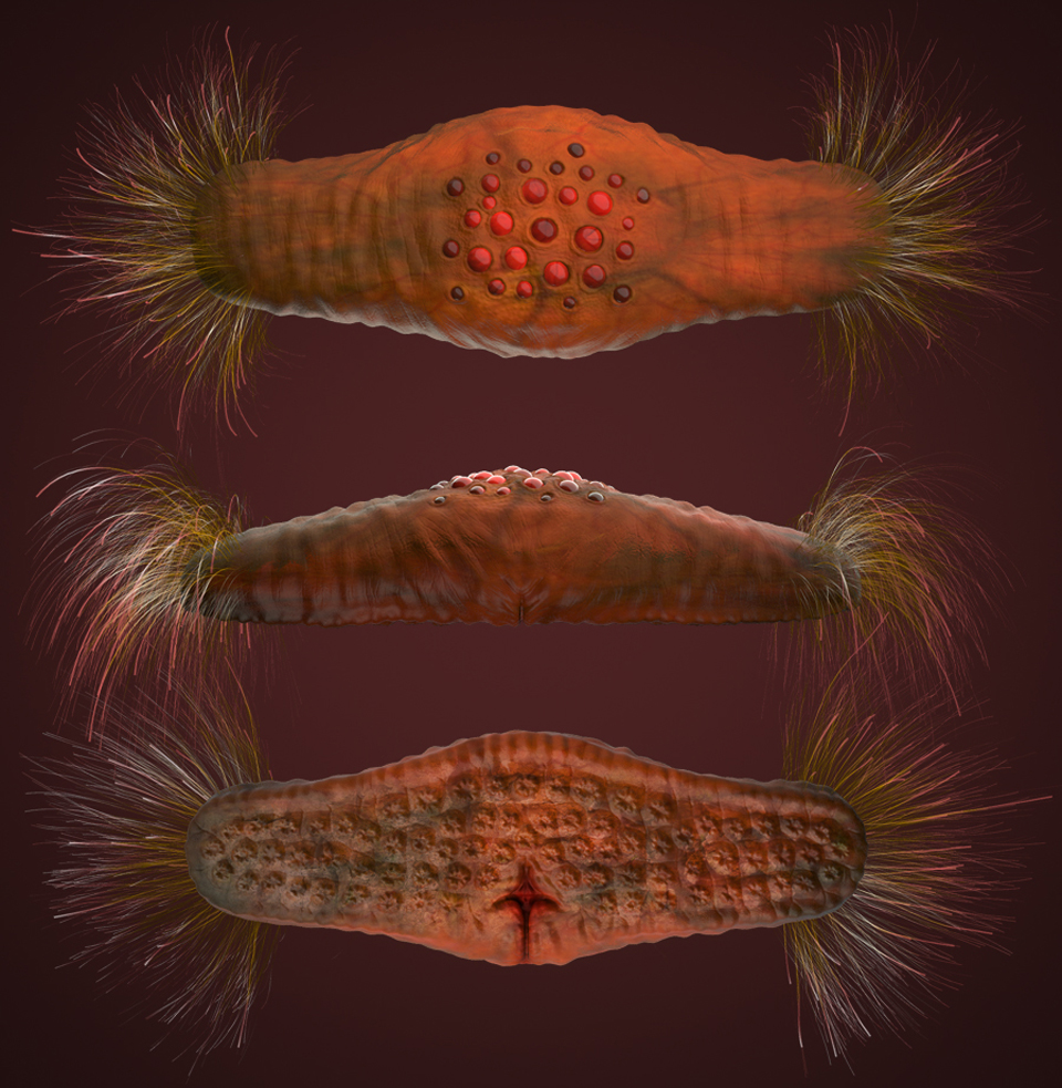 S.M.P. enhabits the tropical and forested regions of Gliese 581. Originally my wife had a nightmare that she was trying to find her way out of an abandoned apartment complex and was 'being chased by these menacing slugs'. Everything they slid over dissolved away from the acid in their slime, as long as a football with eyes on top of the body, a mouth in the front middle section, and hundreds of feelers on both sides.